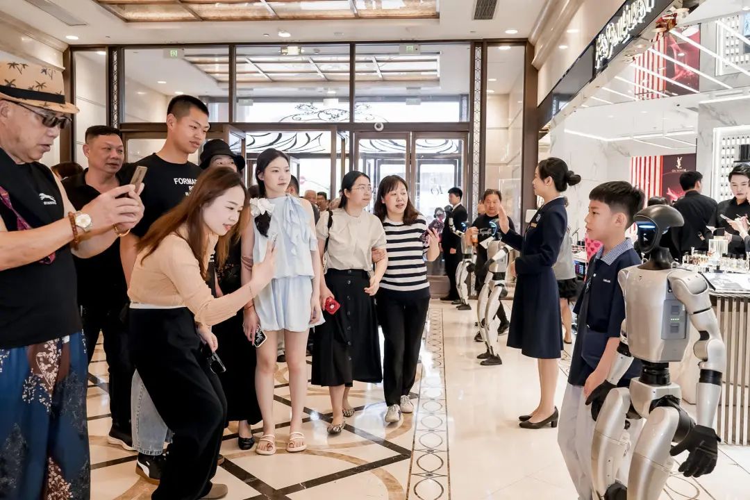 据记者察看,该商场位于黄浦区南京步行街,邻接外滩,处于上海最富贵的贸易地段之一,交通便当;店庆期间,引进了多台机械人取客服人员配合送宾、指导购物、合影互动,科技体验区成了亲子家庭的“打卡点”;该商场具有奇特的开合式玻璃、巨型LED屏幕、超大的中庭贸易空间,还有12部扭转电梯,且配备了各类人道化的办事设备,能让消费者正在舒服的中购物;正在商场引入了离境退税自帮开单机,机械操做界面敌对,中英双语显示,给境外旅客带来更高效、便利的离境退税体验。